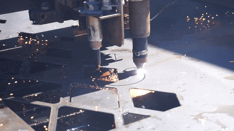 a 4x10 ft plasma cutter with a deployable marking pen, capable of cutting material up to 3/4” thick